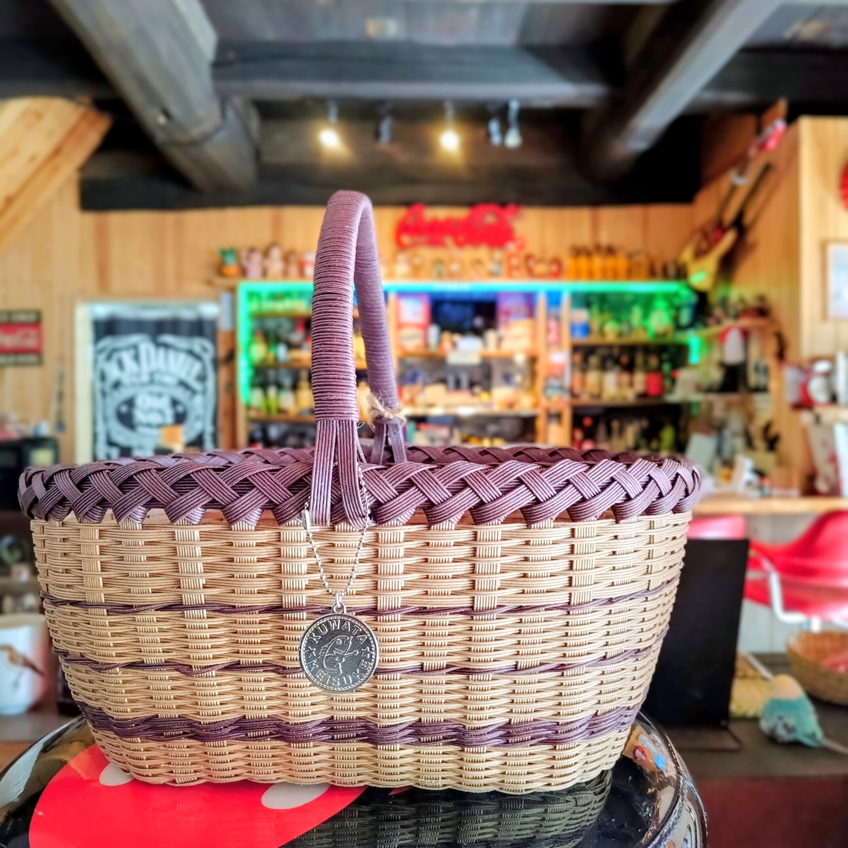 このカゴは、夏の思い出や海辺の楽しいひとときを思い起こさせるデザインが特徴です。手作りの温もりを感じる一品は、インテリアとしても素敵で、ビーチやピクニックのお供にもぴったりです!